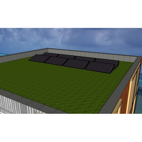 Nosná konstrukce pro fotovoltaické panely na ploché střechy - vaničky "renusol console + 15 °". Set obsahuje vaničku a montážní prvky vč. U profilů. Vhodné pro instalace do 10 kW.