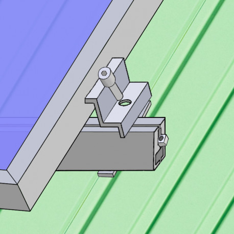 Nosná konstrukce pro šikmou střechu s krytinou plech nebo šindel. Hliníkové profily se kotví do střechy pomocí kombivrutů.