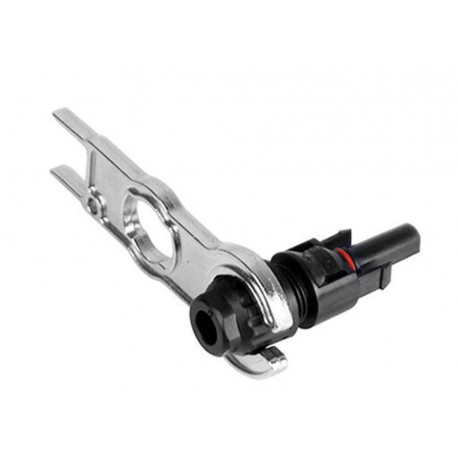 Nástroj z kovu pro rychlé rozpojování konektorů u solárních fotovoltaických panelů.