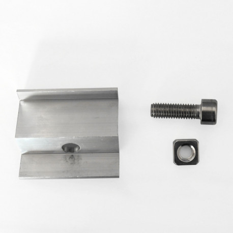 Set univerzální krajní příchytky pro uchycení fotovoltaického panelu k nosnému H profilu včetně nerez šroubu a matice.