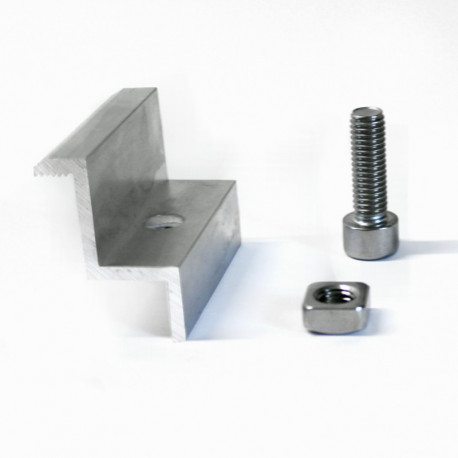 Set univerzální krajní příchytky pro uchycení fotovoltaického panelu k nosnému H profilu včetně nerez šroubu a matice.