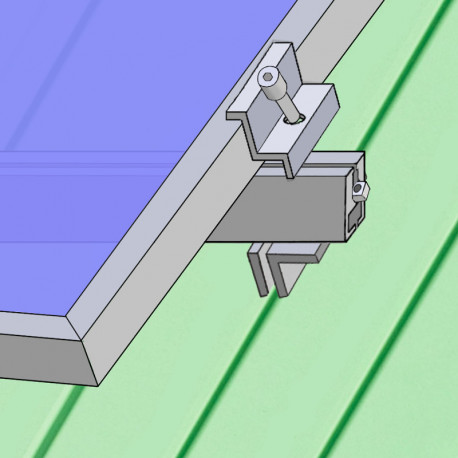 Nosná konstrukce pro šikmou střechu s falcovou plechovou krytinou. Hliníkové profily se kotví uchycením na falc plechových pásů.