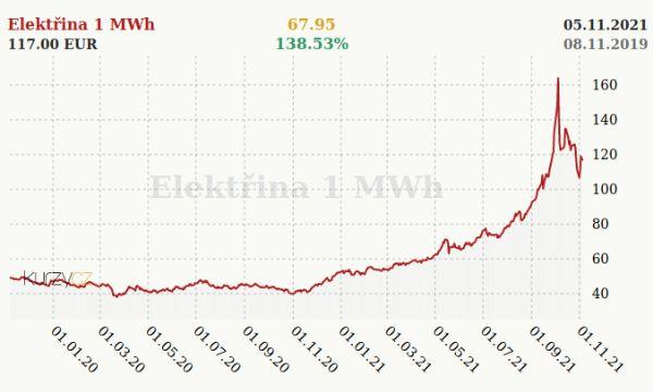 Zdroj: https://www.kurzy.cz/komodity/cena-elektriny-graf-vyvoje-ceny/1mwh-eur-2-roky